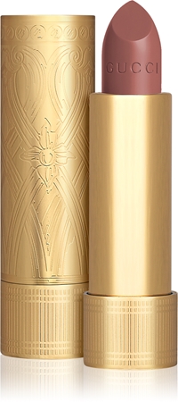 Intense vivid color in a lipstick with a matte finish all in one stroke. Gucci Beauty presents Rouge a Levres Mat, the new matte lipstick from Gucci Makeup, born under the creative direction of Alessandro Michele. Gucci Makeup is creating a new set of beauty ideals embracing self-expression and diversity by breaking industry traditions. A new matte lipstick formula is born from this vision, Rouge a Levres Mat. Delivering bright and rich lip colour with a soft and velvety feel, the texture of Rouge a Levres Mat has a silk-like, comfortable finish, without drying out lips or color smudging. The collections 28 hue palette includes rich nudes, oranges and pinks, reds, purples and a shade of majestic greeninspired by the particular tone seen in the clothes Alessandro Michele sends down the runway. Rouge a Levres Mats gold metal hued tube reveals evenly spaced narrow ribbed grooves etched vertically into its length. Precise and elegant, the packaging recalls the era when lipstick tubes were an execution in art and decoration.